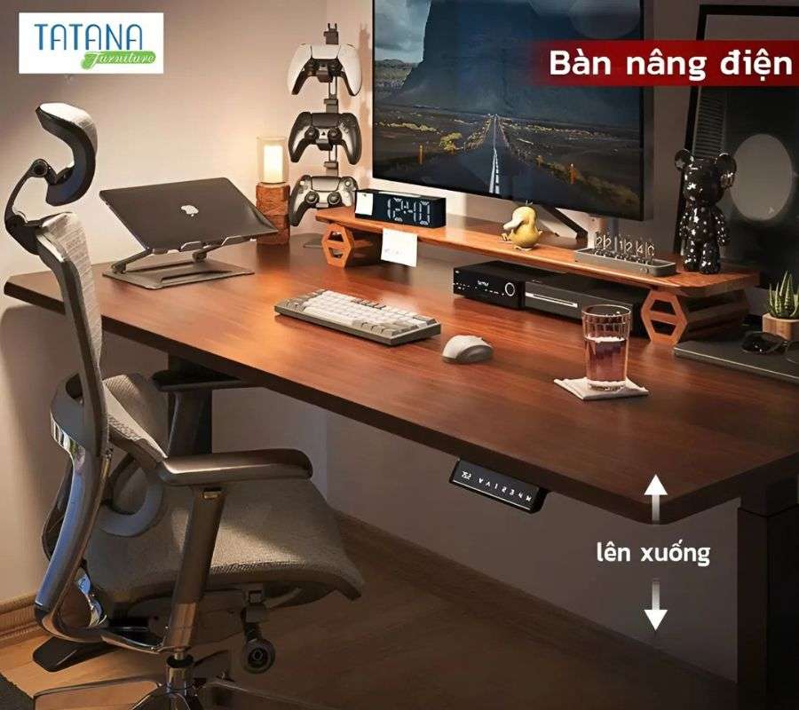 Theo xu hướng 2025, nhiều mẫu bàn gaming gỗ công nghiệp còn tích hợp nâng hạ để chuyển đổi ngồi – đứng, giúp cải thiện sức khỏe lâu dài.