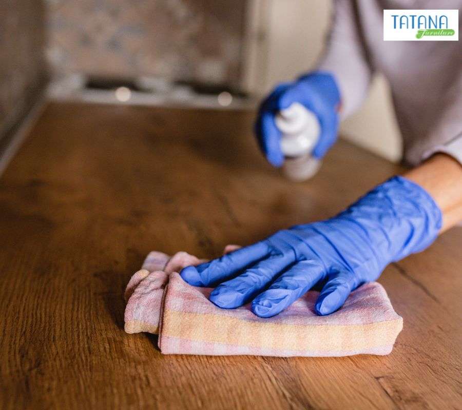 - Luôn dùng khăn mềm, khô hoặc hơi ẩm: lau nhẹ nhàng bề mặt theo chiều vân gỗ hoặc chiều phủ bề mặt để bụi bám được loại bỏ mà không gây trầy xước.