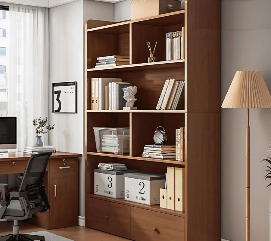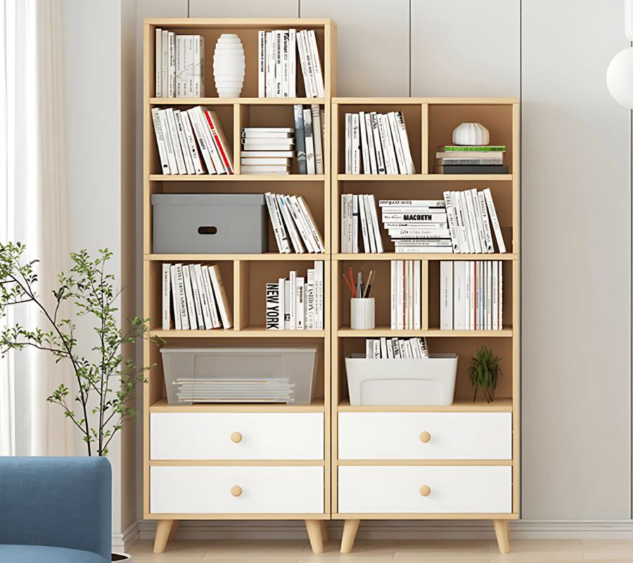 Nếu bạn có nhiều đồ dùng cá nhân, tài liệu, hoặc đồ dùng văn phòng, kệ sách gỗ đứng kết hợp ngăn kéo là một lựa chọn lý tưởng. Nó giúp bạn tận dụng tối đa không gian lưu trữ và sắp xếp đồ đạc một cách khoa học.