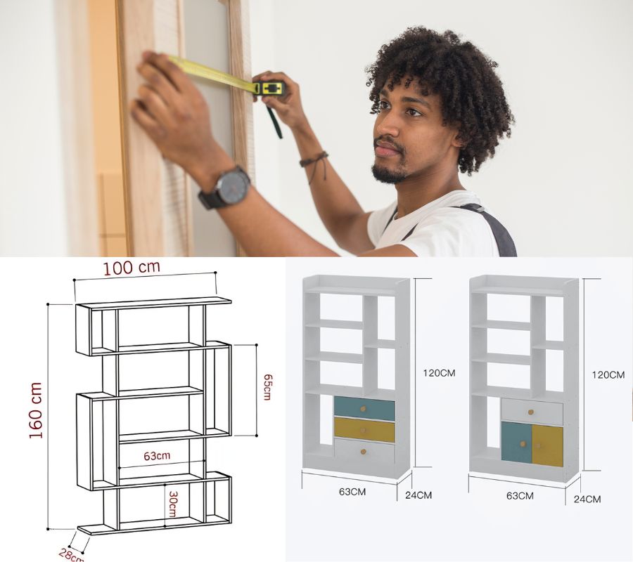 Đo đạc kỹ lưỡng diện tích không gian đặt kệ sách để lựa chọn kích thước phù hợp, tránh tình trạng kệ quá to hoặc quá nhỏ. Lựa chọn kiểu dáng kệ sách phù hợp với phong cách nội thất tổng thể của căn phòng.