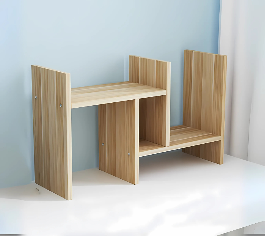 • Kệ sách gỗ mini đặt bàn: Là loại kệ nhỏ nhất, thường có từ 1 đến 3 tầng, được đặt trực tiếp trên mặt bàn làm việc, bàn học hoặc bàn trang điểm để đựng sách, tài liệu, văn phòng phẩm hoặc đồ trang trí nhỏ.