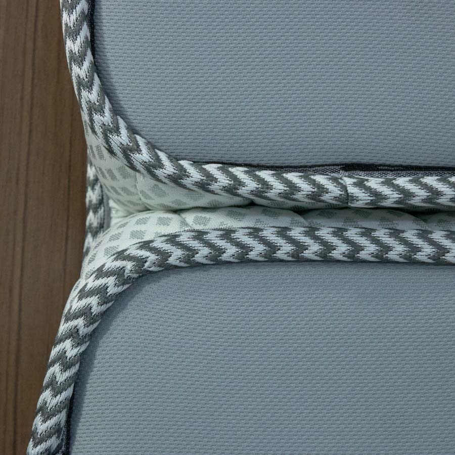– Bên ngoài là lớp áo nệm được may độc đáo với chất liệu vải gấm thun lạnh ở hai mặt nệm và thành nệm tạo nên nét đẹp thanh thoát cho chiếc nệm.
