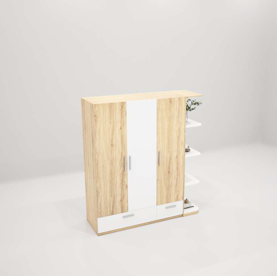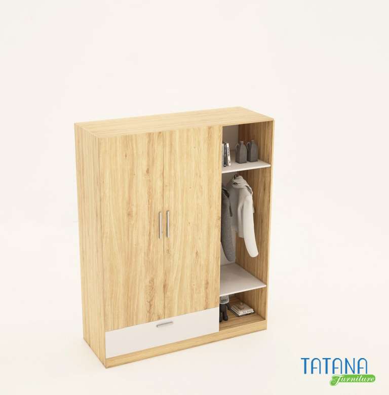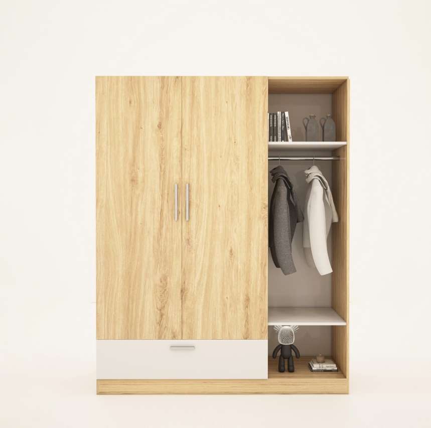 Một chiếc tủ quần áo làm từ gỗ MDF lõi xanh chống ẩm, thiết kế đơn giản nhưng chia ngăn hợp lý, sẽ giúp căn phòng luôn ngăn nắp.
