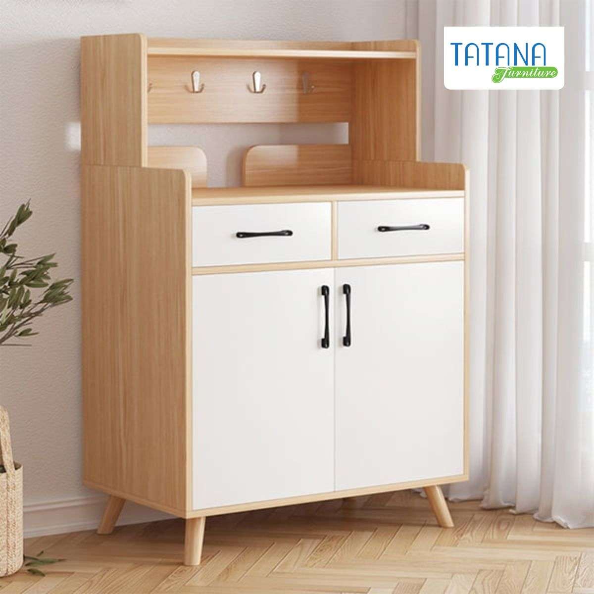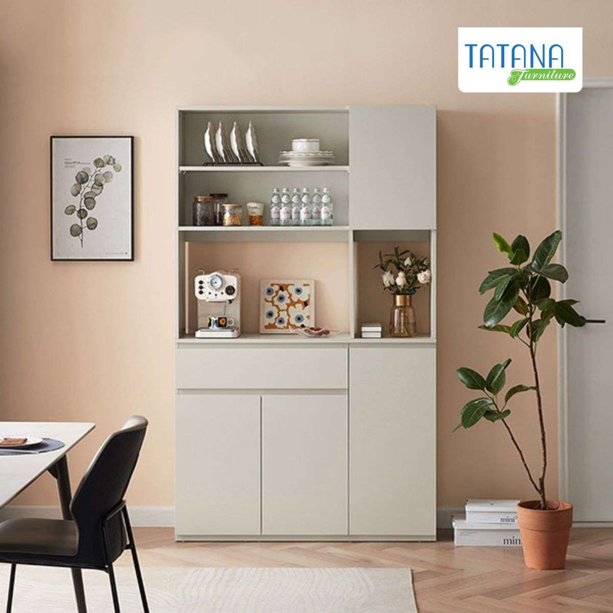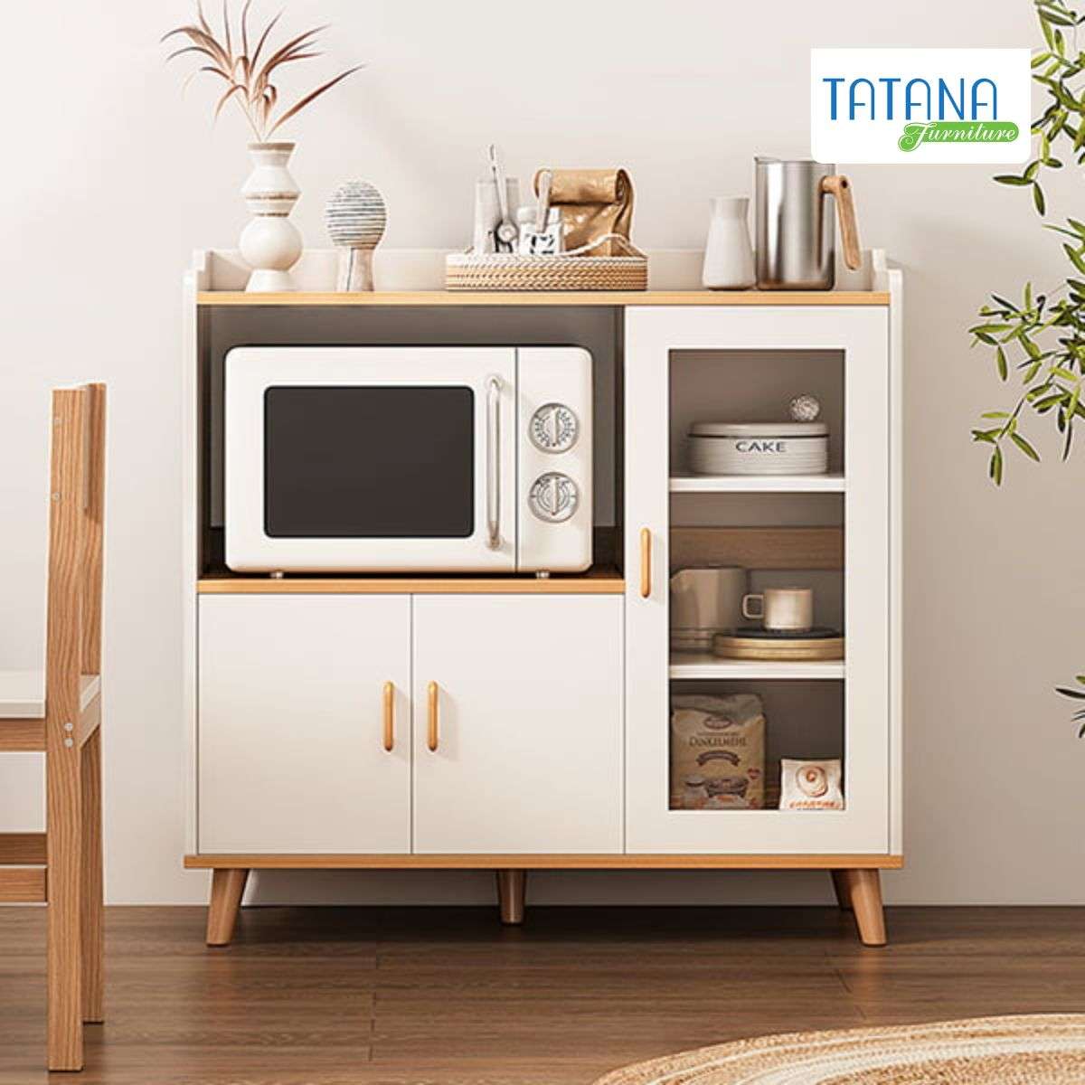 Mẫu TUB01 là sự kết hợp hoàn hảo giữa tủ lưu trữ và kệ lò vi sóng. Với tông màu trắng chủ đạo phối cùng viền gỗ sáng màu, TUB01 mang lại cảm giác sạch sẽ và thoáng đãng. Tủ được thiết kế gồm một khoang trống lớn để lò vi sóng, một hệ tủ kính bên phải để trưng bày ly tách và các ngăn kéo đóng kín phía dưới giúp bảo quản đồ khô hiệu quả.