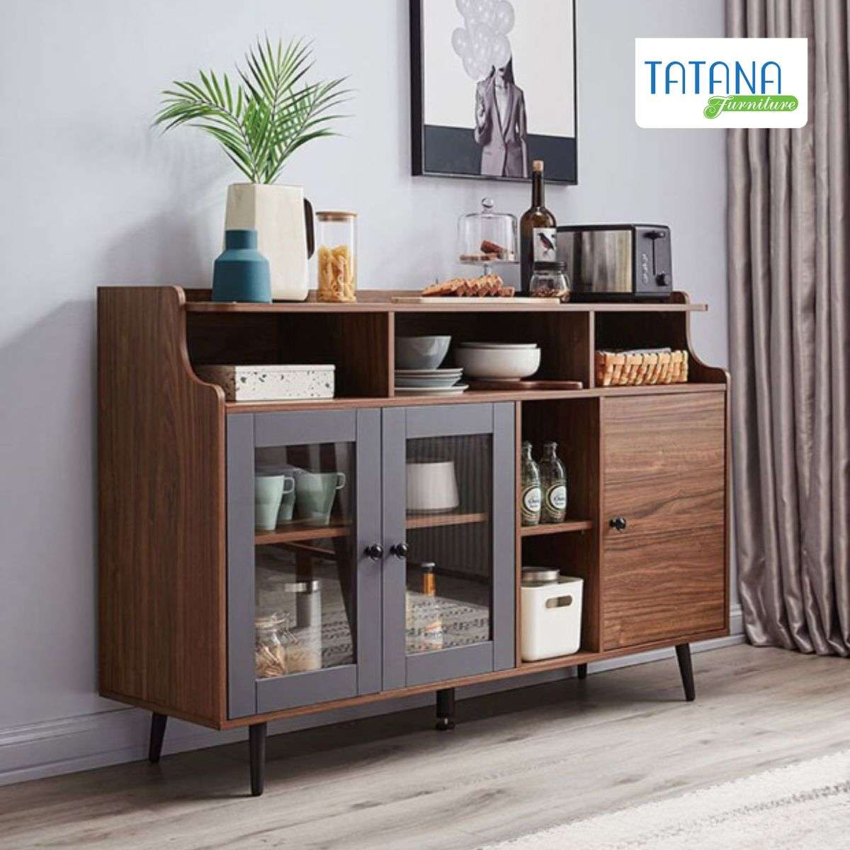 Nếu bạn yêu thích vẻ đẹp cổ điển nhưng vẫn muốn nét hiện đại, TUB03 là lựa chọn không thể bỏ qua. Mẫu tủ bếp gỗ này sử dụng tông màu nâu gỗ óc chó trầm ấm, kết hợp với cánh cửa kính khung xám. Thiết kế thấp, chân tủ cao thanh thoát giúp việc vệ sinh sàn nhà trở nên dễ dàng. Đây là mẫu tủ sideboard tuyệt vời để làm trạm cà phê hoặc nơi trưng bày rượu.