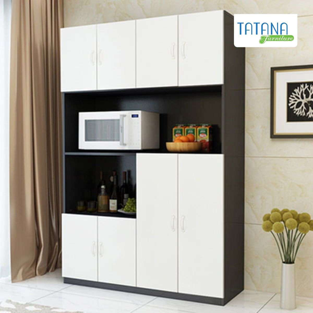 Với thiết kế cao và chia thành nhiều phân khu, TUB11 nổi bật với tông màu đen trắng đối lập. Khoang giữa rộng rãi để vừa lò vi sóng và các khay trái cây. Phía dưới là các ngăn tủ kín để chứa những vật dụng ít dùng tới, giúp bếp luôn sạch sẽ.