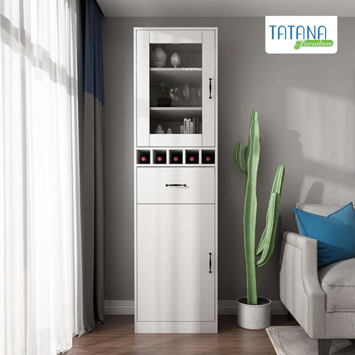 Mẫu TUB20 là giải pháp lưu trữ thông minh cho không gian hẹp với thiết kế dáng đứng kịch trần đầy thanh lịch. Sản phẩm nổi bật với tông trắng chủ đạo, kết hợp cùng hệ tủ kính trưng bày ly tách phía trên, dãy 6 ô kệ rượu tích hợp ở giữa và các ngăn kéo phía dưới sử dụng tay cầm đen tương phản để bảo quản đồ dùng gọn gàng.