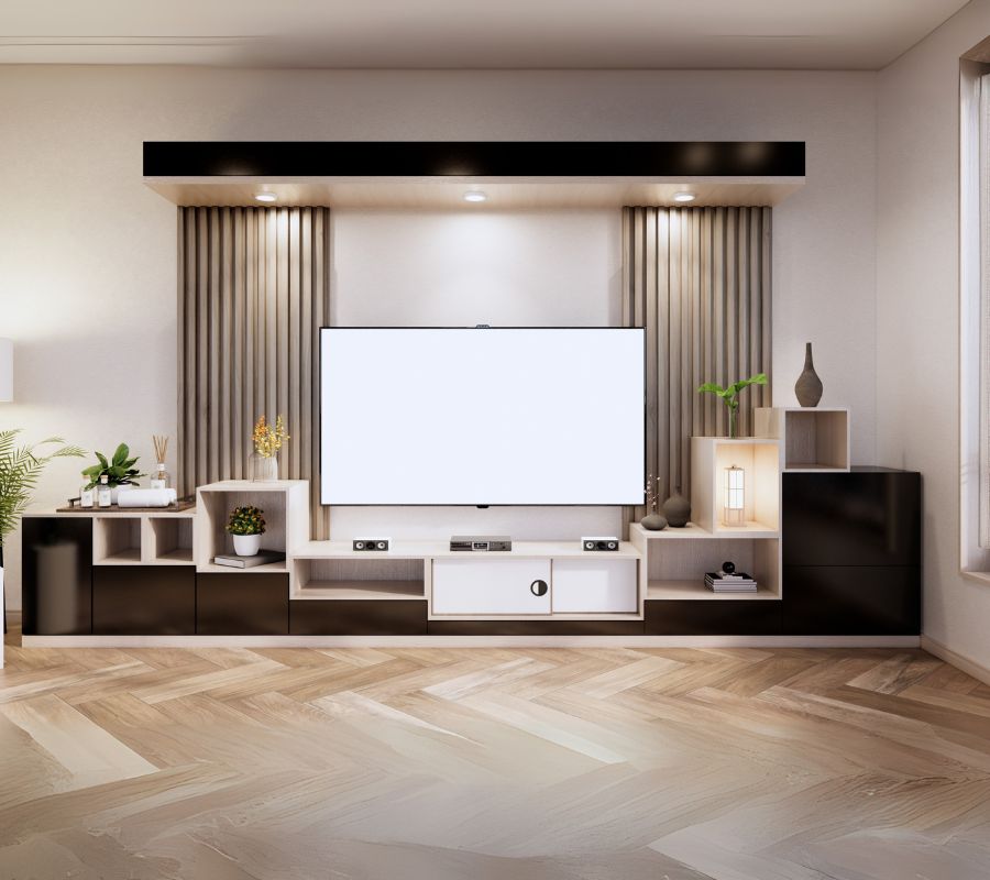 Ví dụ, nếu phòng khách của bạn được thiết kế theo phong cách hiện đại, nên chọn các mẫu tủ kệ tivi có thiết kế đơn giản, đường nét tinh tế, màu sắc trung tính.