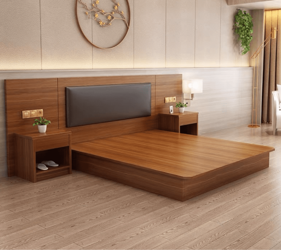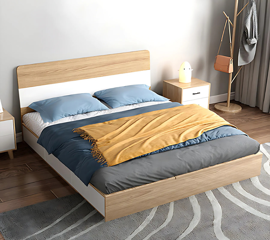 - Giường gỗ công nghiệp (MDF/MFC phủ Melamine): Từ 3 triệu – 8 triệu VND (tùy kích thước và thiết kế).