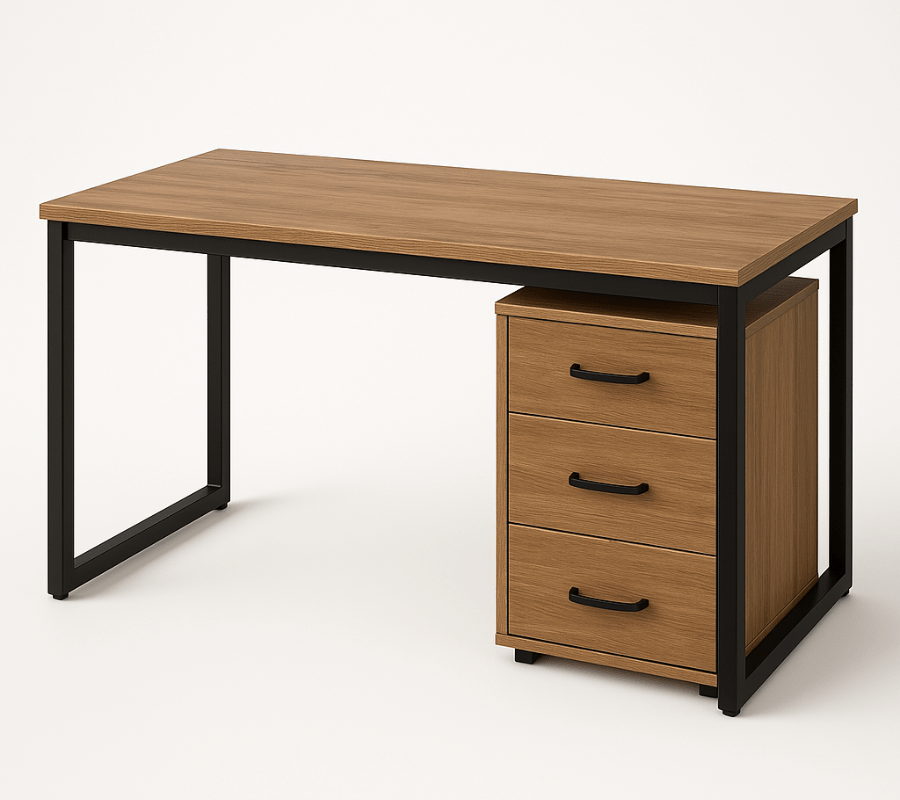 Bàn làm việc gỗ công nghiệp phong cách hiện đại - Bàn làm việc chân sắt mặt gỗ có hộc tủ: Kết hợp giữa sự chắc chắn của khung sắt và vẻ đẹp tự nhiên của mặt gỗ, mang đến phong cách industrial hoặc tối giản.