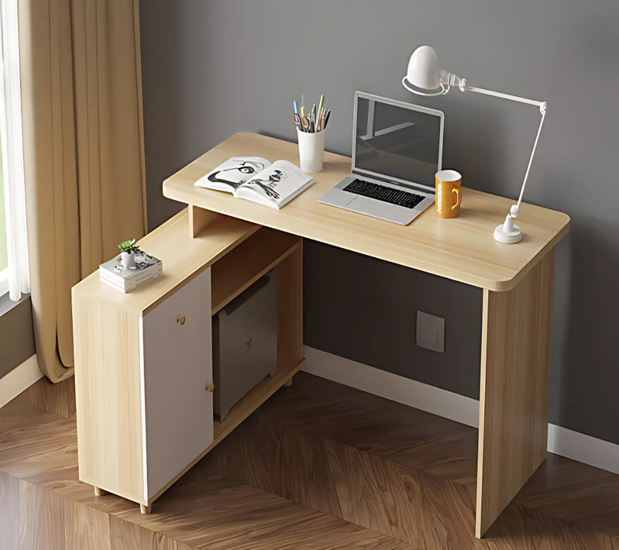 - Bàn làm việc có hộc tủ chữ L: Tận dụng tối đa không gian góc, tạo ra một khu vực làm việc rộng rãi và thoải mái.