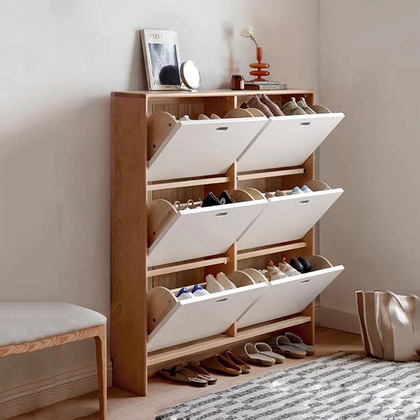 • Thiết kế tối ưu không gian: Tủ giày cánh lật thường có chiều ngang nhỏ, phù hợp với hành lang hoặc góc nhà hẹp.