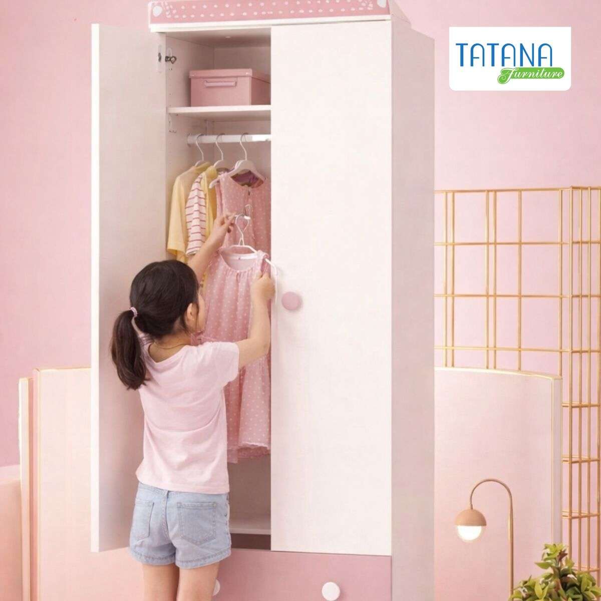 - Ưu điểm: Tủ mang lại khả năng lưu trữ đa dạng, vừa giúp bảo quản quần áo tránh bụi bẩn, vừa có không gian kệ hở để bé trưng bày gấu bông hoặc sách truyện, giúp căn phòng thêm sinh động.