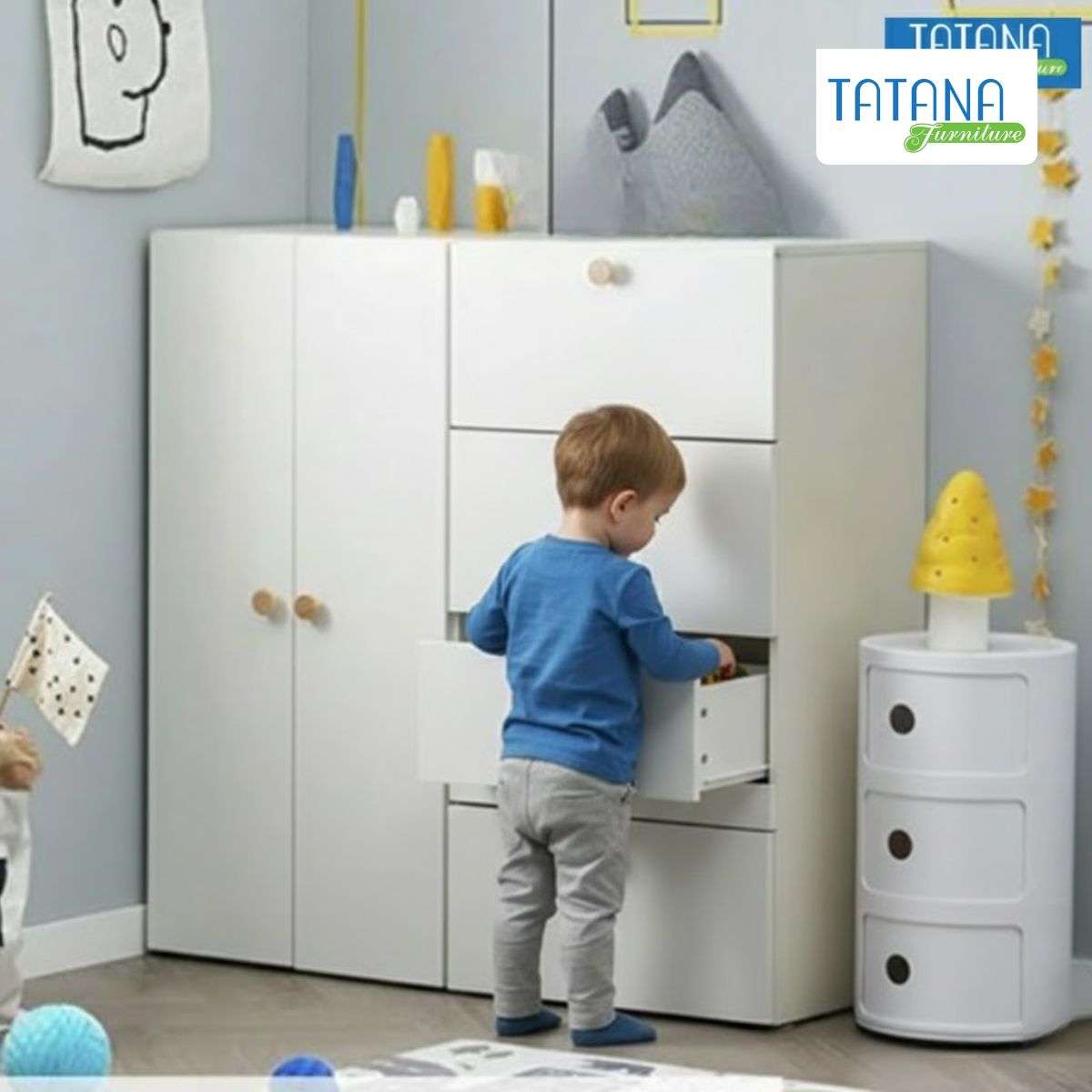 - Ưu điểm: Chiều cao của tủ được thiết kế cực kỳ vừa tầm với trẻ nhỏ, giúp bé tự tin đóng mở ngăn kéo lấy đồ mà không lo nguy hiểm; mặt trên của tủ còn có thể tận dụng như một chiếc kệ để đèn ngủ hoặc vật dụng cá nhân.