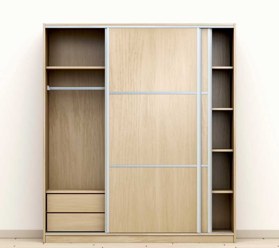 Tủ cánh lùa (trượt) đơn giản: Thiết kế cánh lùa không chỉ tiết kiệm diện tích mà còn mang đến vẻ đẹp thanh lịch và hiện đại. Các đường ray trượt được thiết kế ẩn hoặc tối giản để không làm ảnh hưởng đến tổng thể.